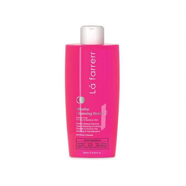 محلول پاک کننده آرایش لافارر مناسب پوست خشک و حساس کد 2 حجم 250 میلی لیتر